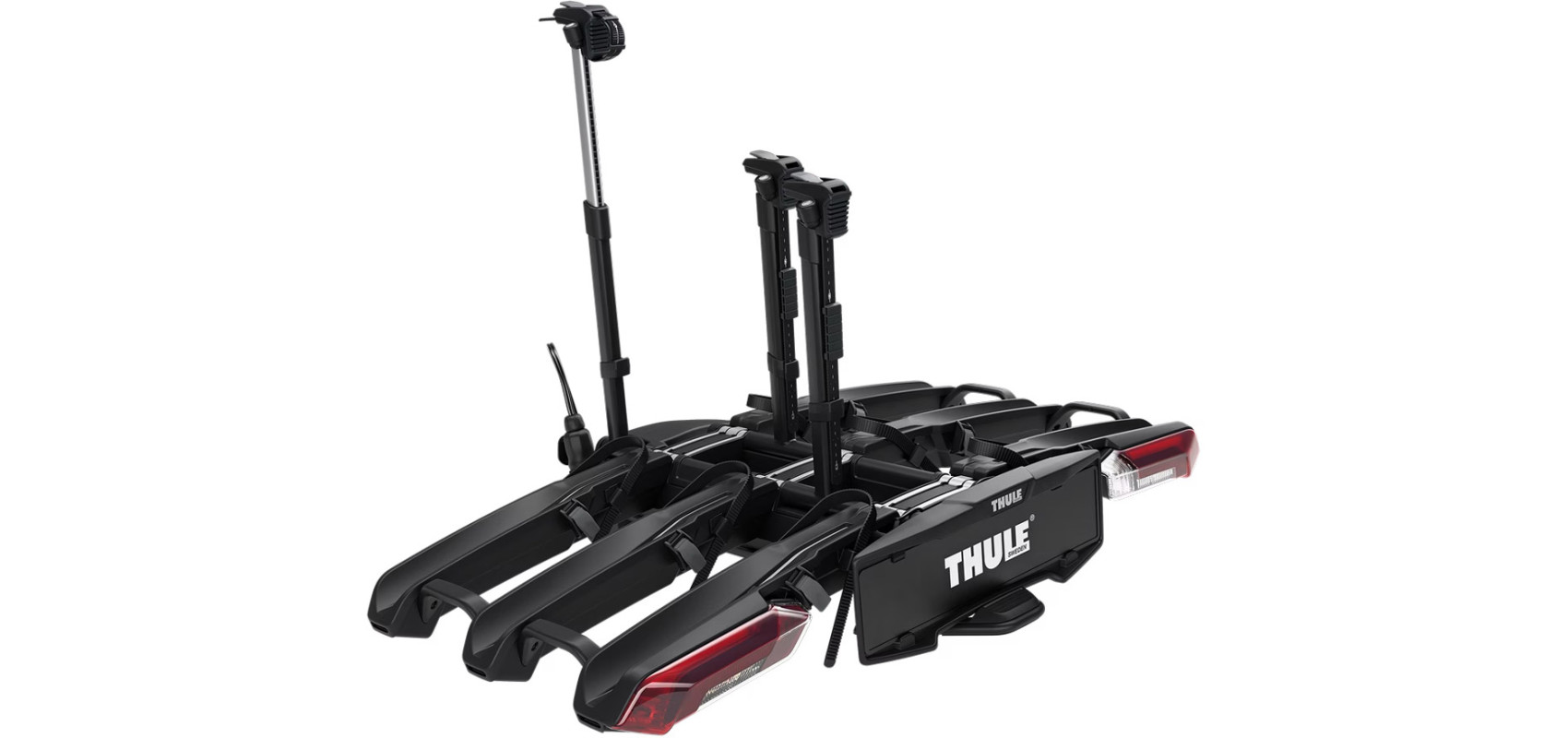 Bagażnik rowerowy Thule Epos pasuje do wszystkich typów rowerów, jest szybki, łatwy i wygodny w użyciu – montaż rowerów wymaga minimalnego wysiłku dzięki innowacyjnemu teleskopowemu systemowi mocowania roweru. Ramiona roweru pozwalają po prostu przymocować rower w dowolnym miejscu do ramy lub tylnego koła, zapewniając liczne możliwości mocowania. Możesz ładować i rozładowywać maksymalnie trzy rowery w dowolnej kolejności – obsługiwane są wszystkie typy ram i geometrie, w tym rowery elektryczne, rowery górskie, rowery szutrowe oraz rowery z błotnikami i bagażnikami.