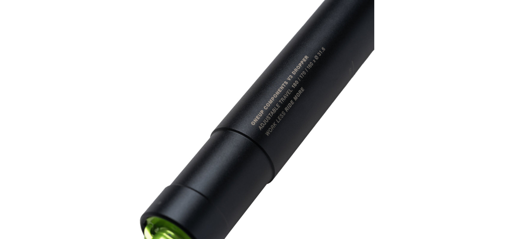 OneUp Components V3 dropper to najlżejsza sztyca regulowana bezstopniowo na rynku, ma najkrótszą długość całkowitą, regulowany skok 20 mm, wydłużony okres między serwisowy wynoszący 350 godzin oraz nowe tuleje IGUS® o ultra niskim tarciu wraz z uszczelnieniami SKF®.