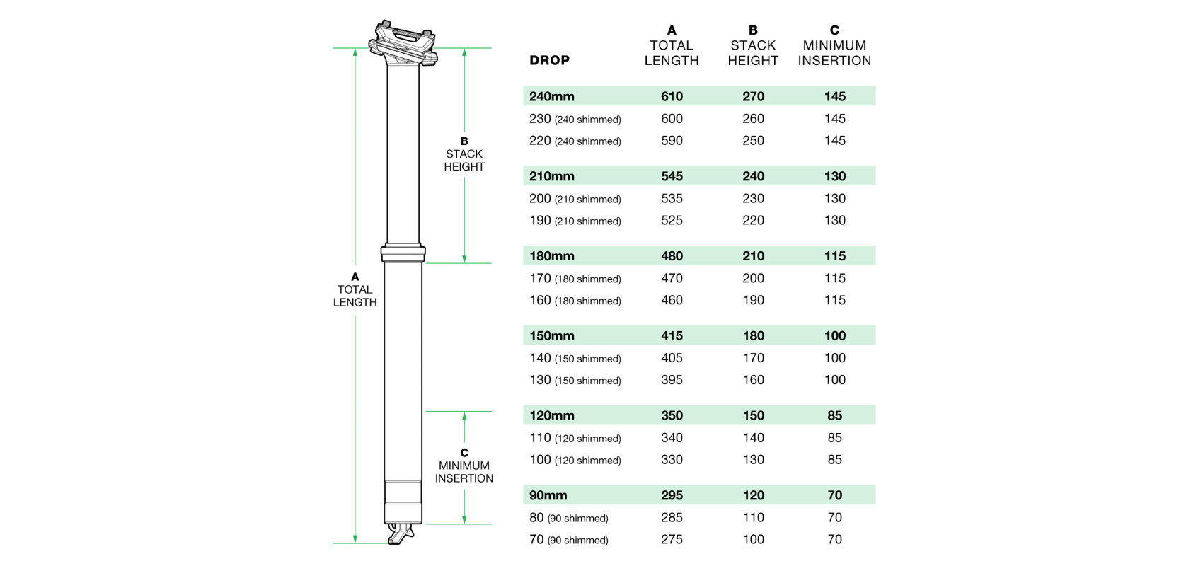 Regulowany skok : Skok każdego wariantu sztycy można zmniejszyć o 10mm lub 20mm,