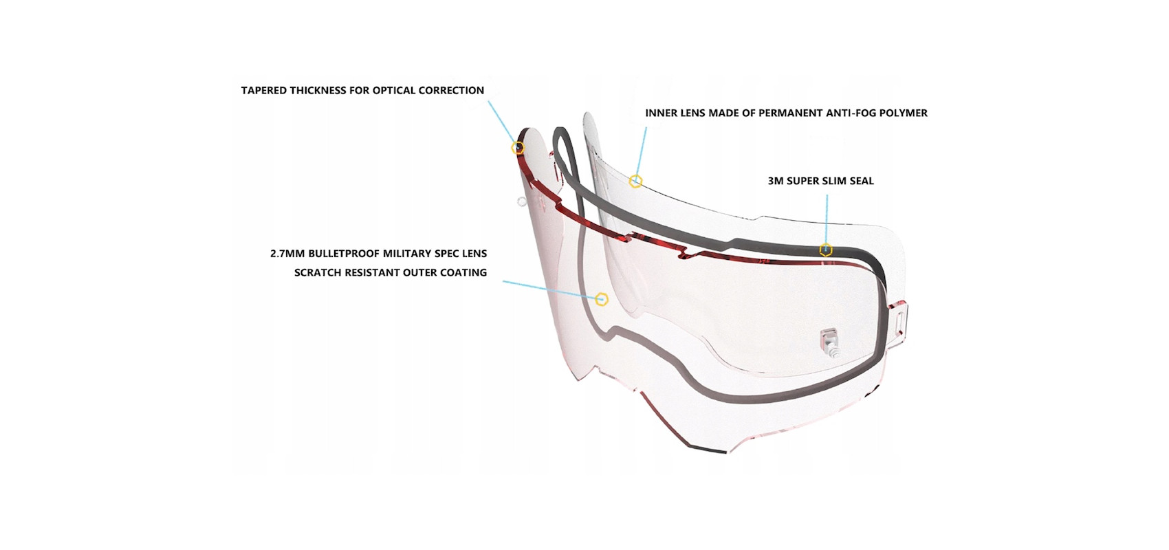 Szybka do gogli Leatt o grubości 2.7 mm z wbudowanym systemem anti-fog.