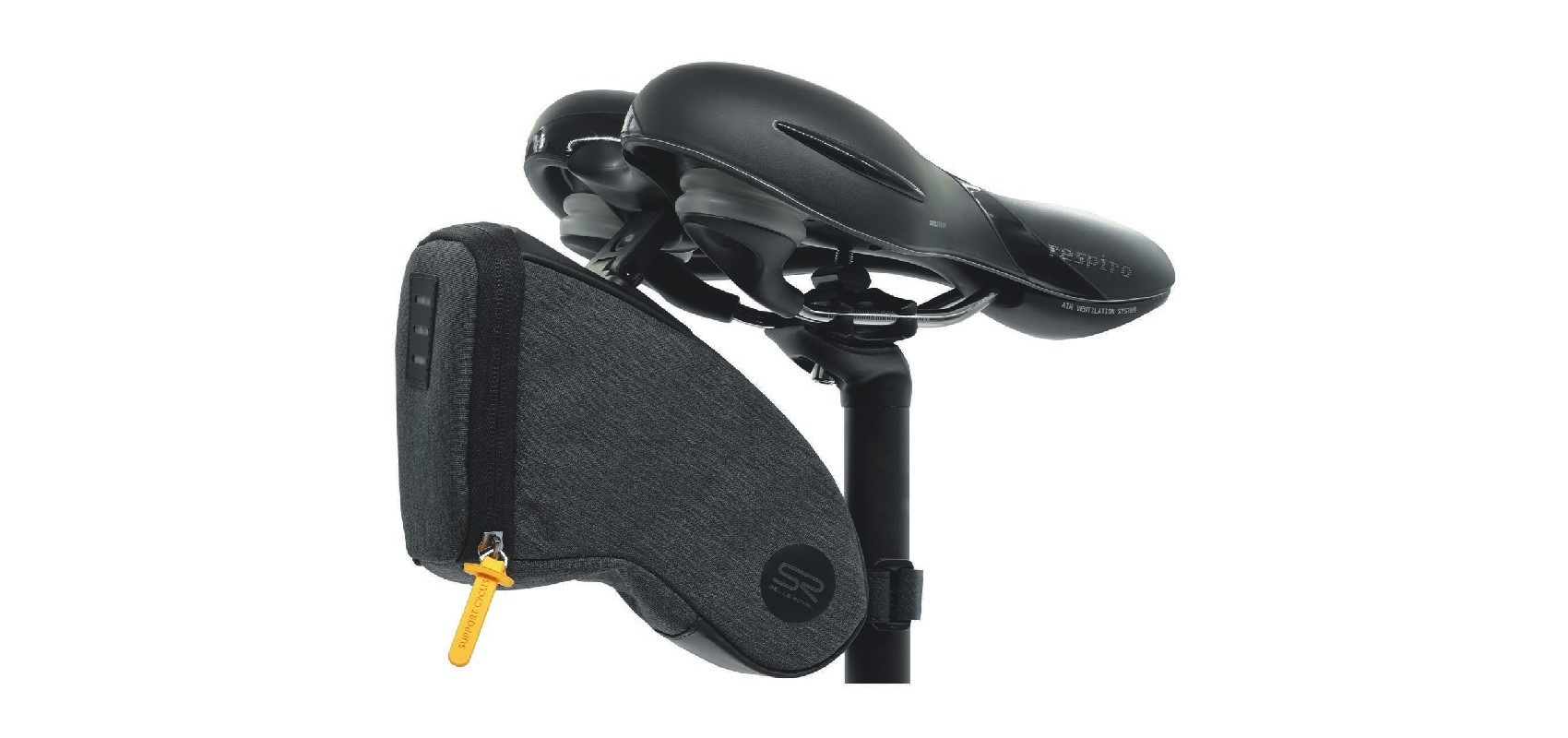 Torba jest kompatybilna ze wszystkimi siodłami Selle Royal wyposażonymi w opatentowany Integrated Clip System i posiada pasek na rzep, który można przymocować do wspornika siodełka, aby zapewnić dodatkową stabilność.