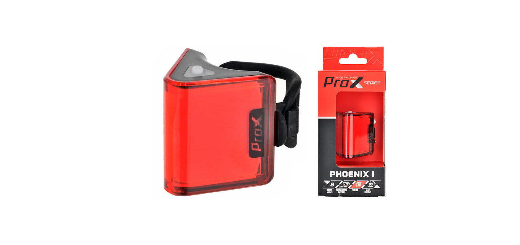 Lampa ProX Phoenix o charakterystycznym trójkątnym kształcie zwiększa widoczność rowerzysty na drodze nie tylko z tyłu, ale również z boku, super jasne diody Led Cob o mocy 50 lub 100 lumenów (zależnie od wybranej wersji) zamknięte w kloszu ABS to praktyczne rozwiązanie dla jeżdżących za dnia i w nocy.